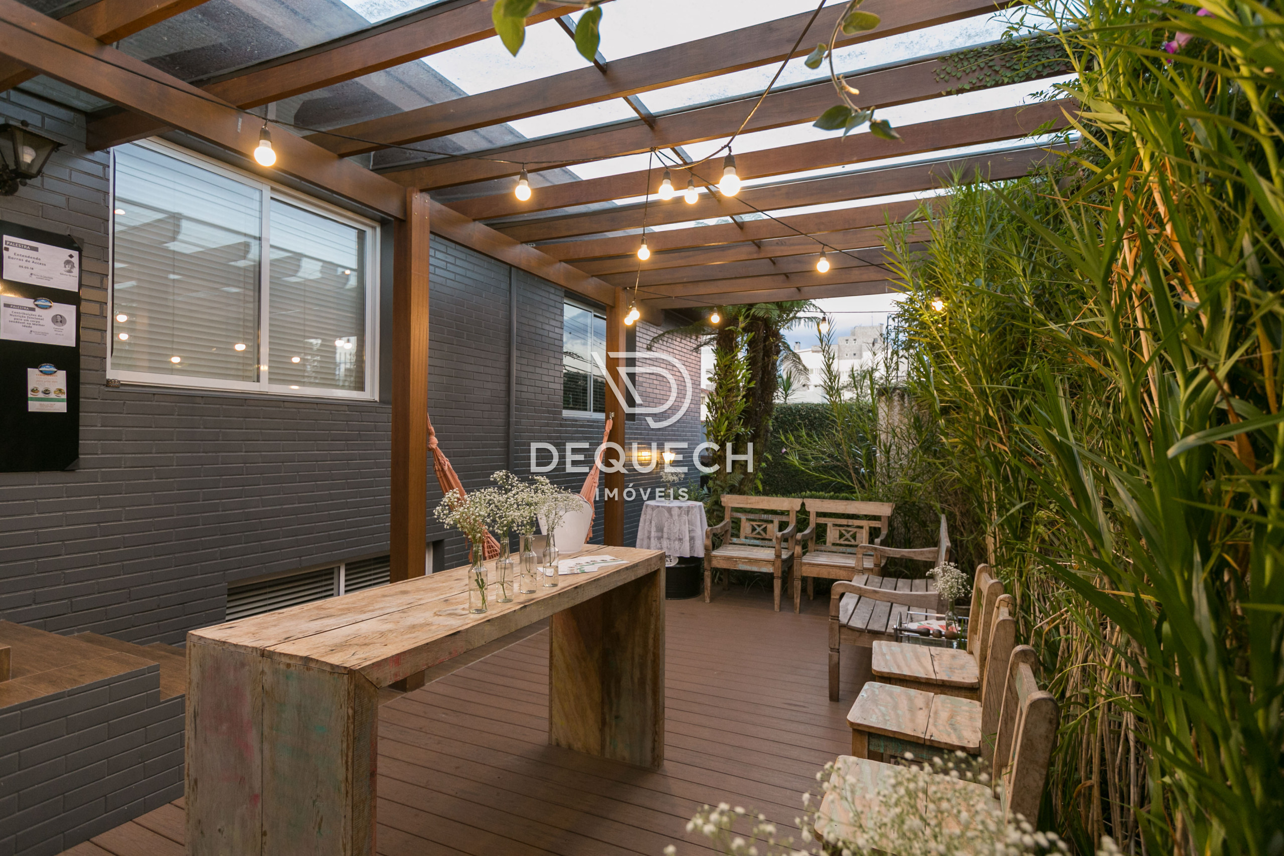 O ambiente também possui 2 banheiros, copa, deck externo e recepção com secretária e atendimento telefônico, totalizando 150m².