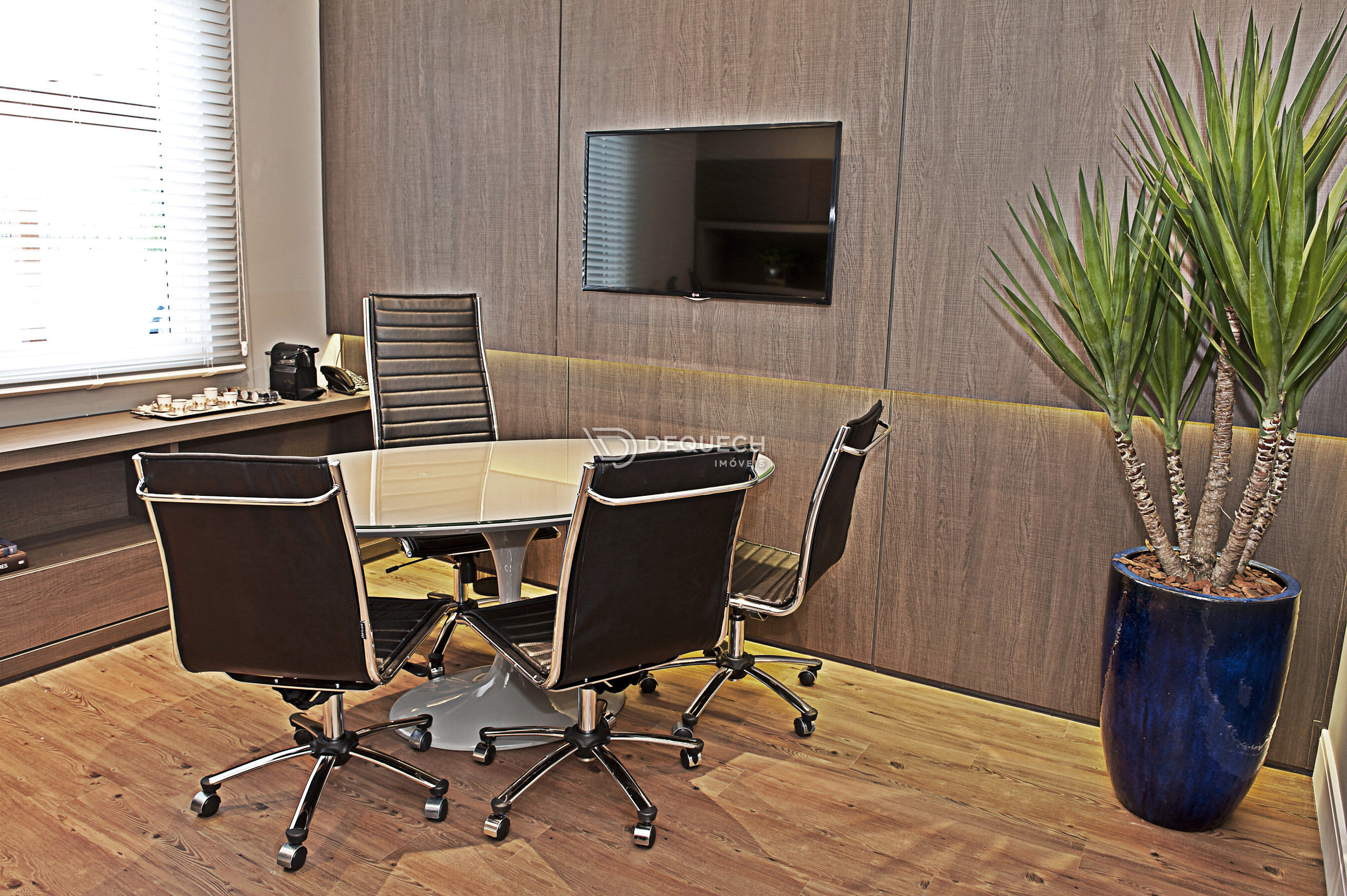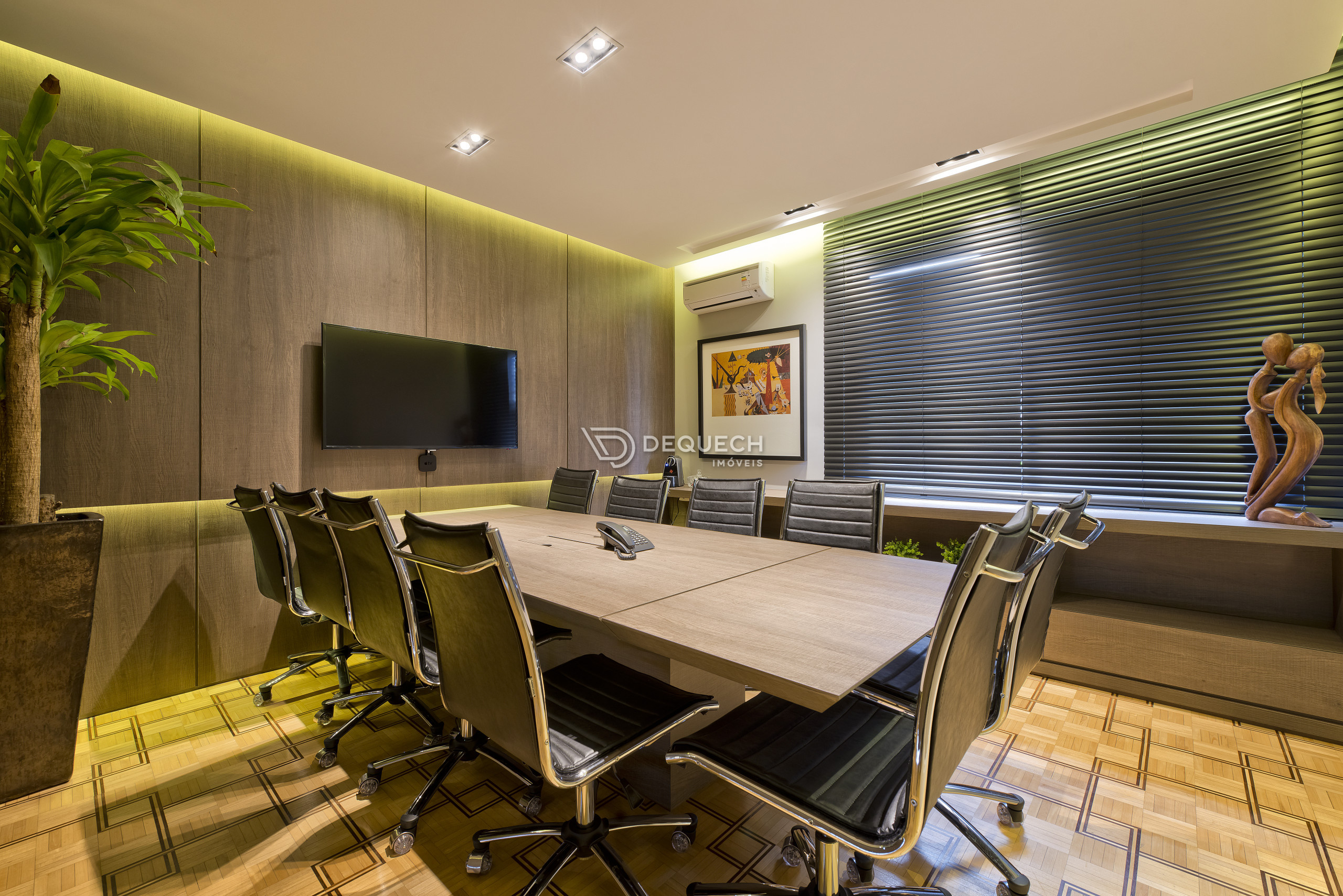 Sala de reunião aconchegante e imponente para até 10 pessoas, ambiente já mobiliado, decorado e climatizado. Perfeito para a sua equipe trabalhar com conforto e tranquilidade em um ambiente seguro e silencioso!