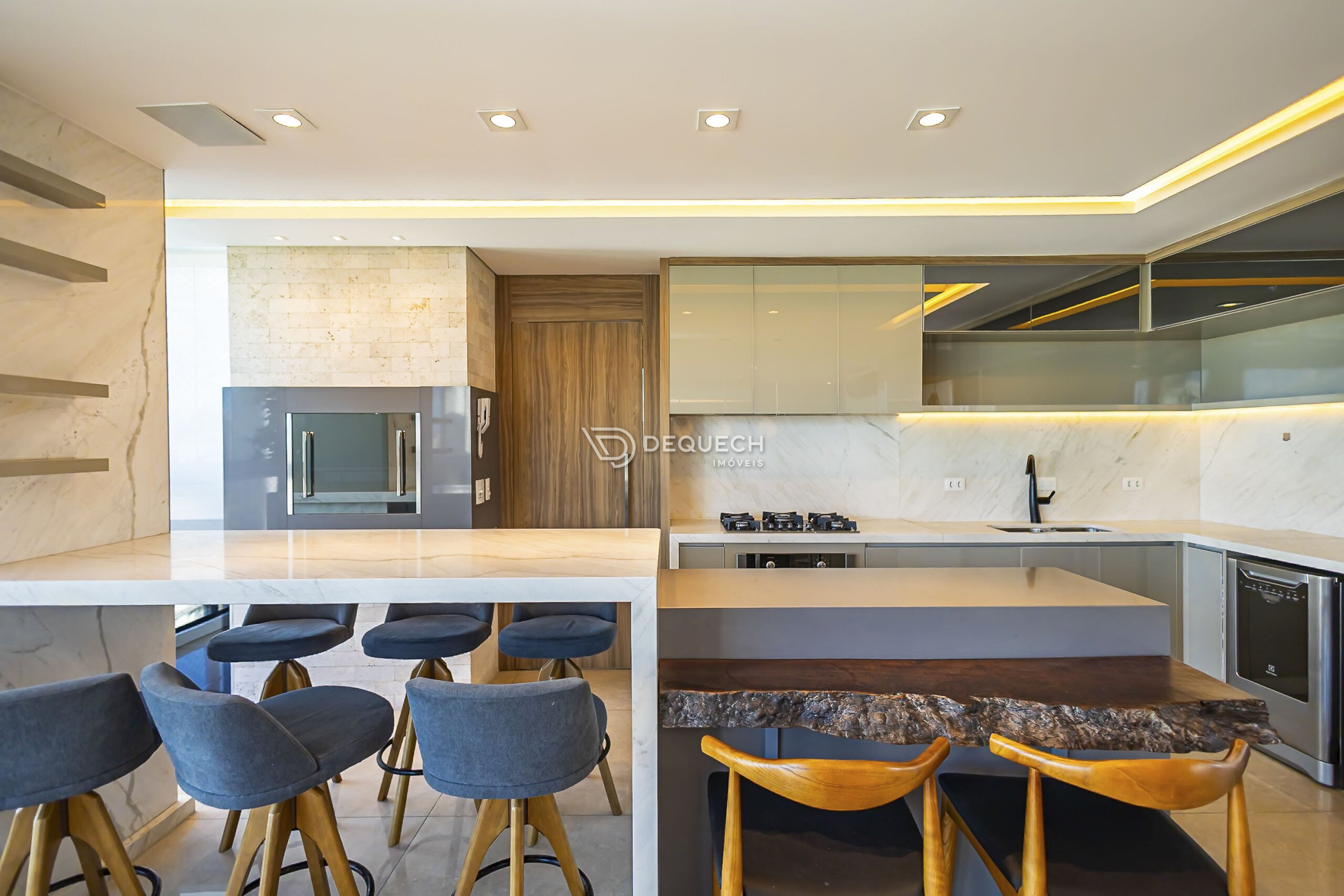 A planta destaca-se pela integração da área social, unindo o living à cozinha e ao espaço da churrasqueira, favorecendo o convívio com amigos e família.