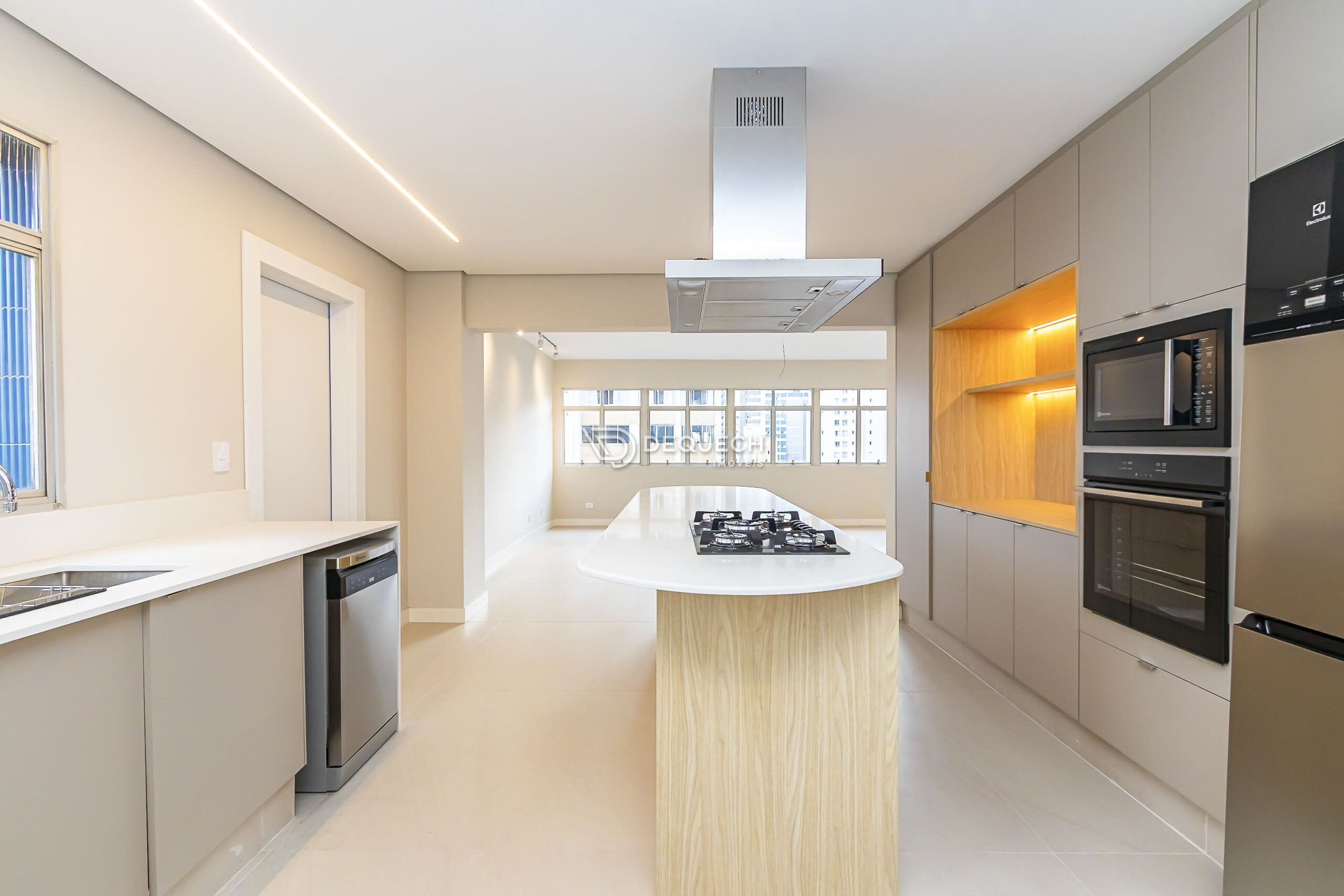 Com projeto assinado pela arquiteta Flavia Bizinelli, o imóvel passou por um retrofit completo, sendo totalmente revitalizado com atenção minuciosa aos detalhes e materiais de excelência. A proposta valoriza a amplitude e a integração dos ambientes, traduzindo um estilo contemporâneo sofisticado, sem abrir mão do aconchego.