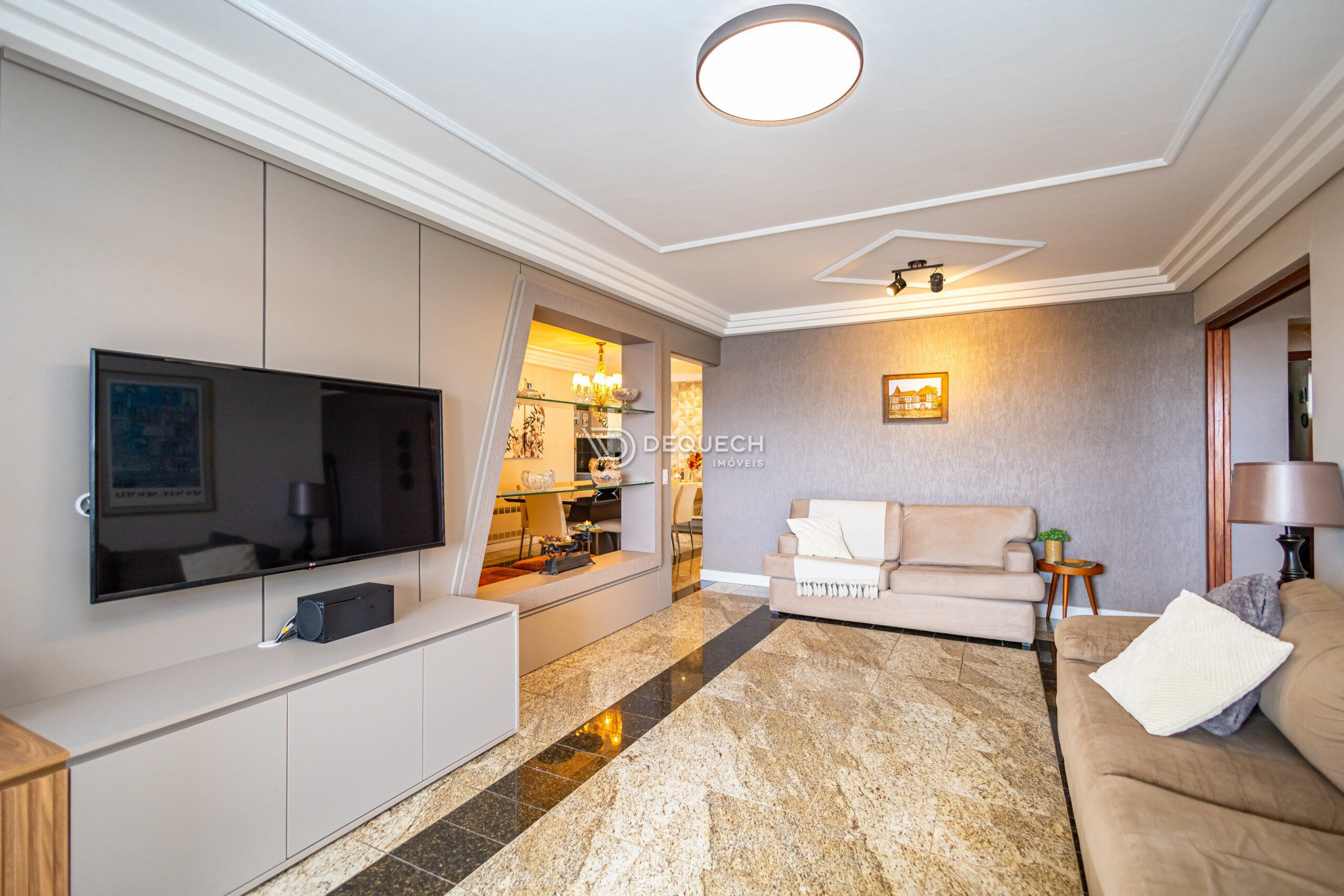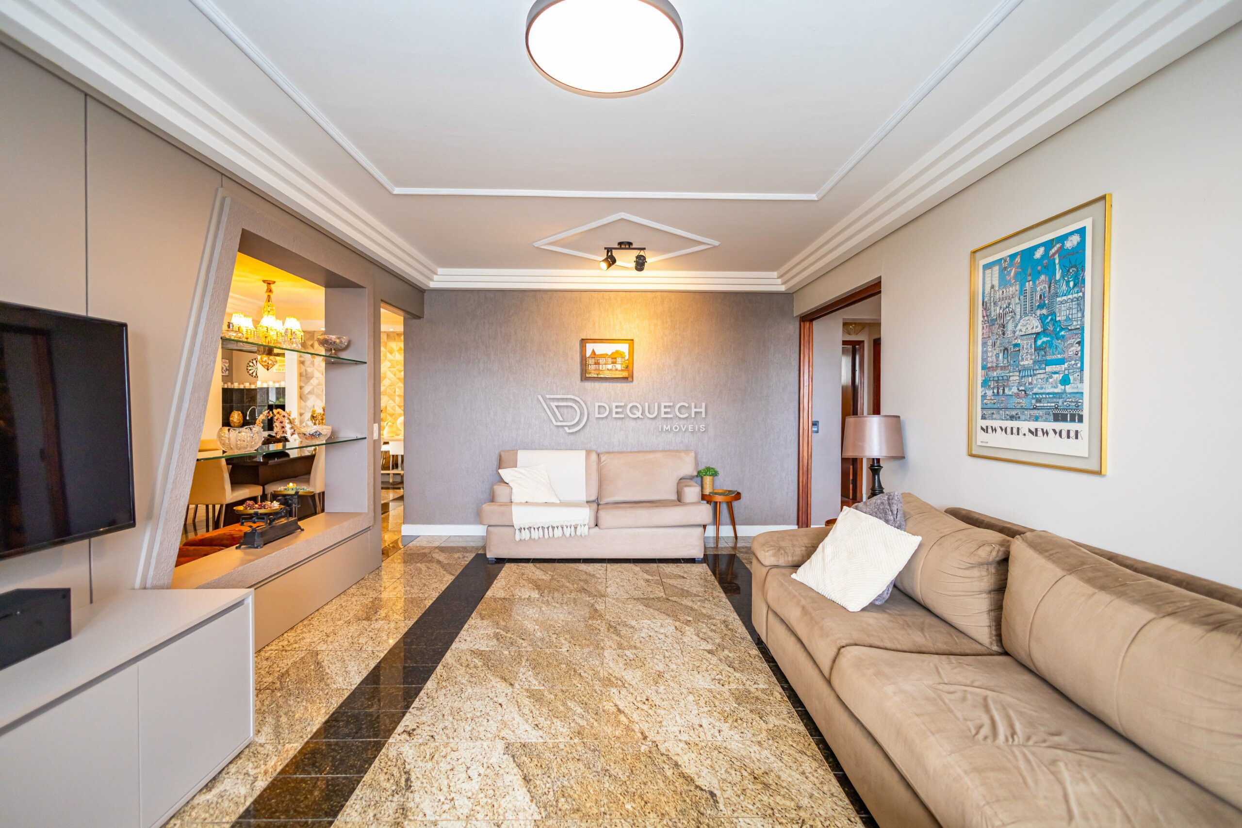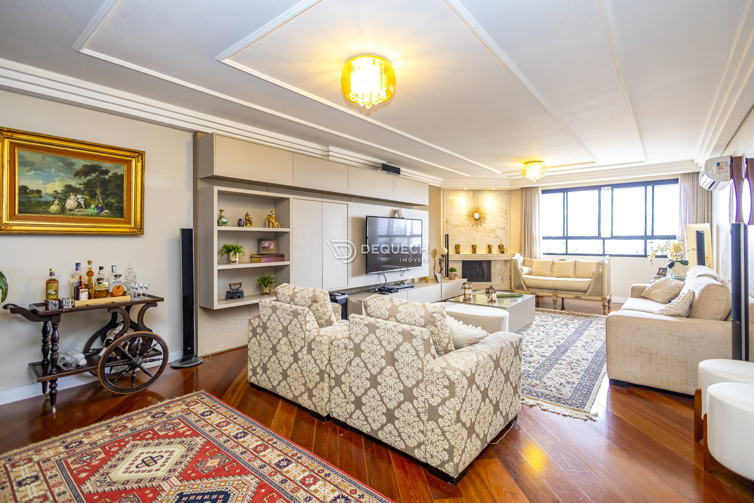 A planta é bem distribuída, com 3 salas independentes, que podem ser integradas conforme a necessidade. A sala de jantar se conecta à sacada com churrasqueira. São 4 quartos, sendo 2 suítes, além de dependência de serviço completa, hoje usada como depósito e quarto de apoio. A lavanderia é ampla e bem ventilada.