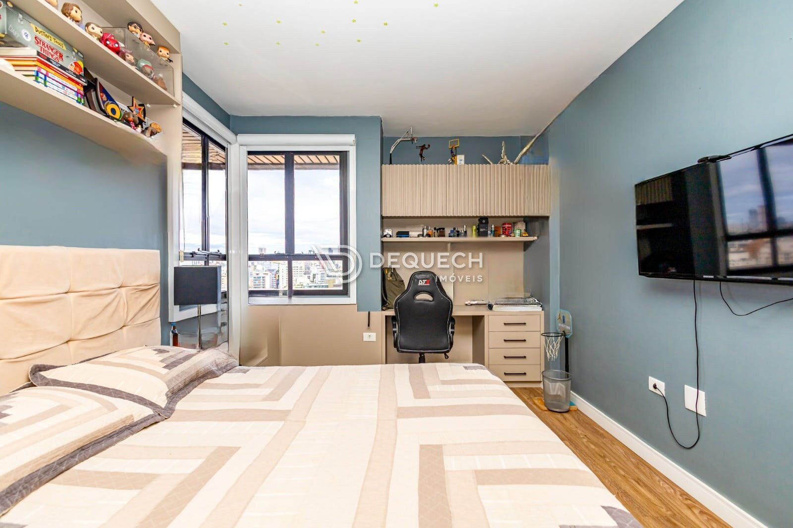 Apartamento amplo no Batel, sendo um por andar, face norte, andar alto e vista definitiva. A iluminação natural é constante e a privacidade é um ponto forte do imóvel.