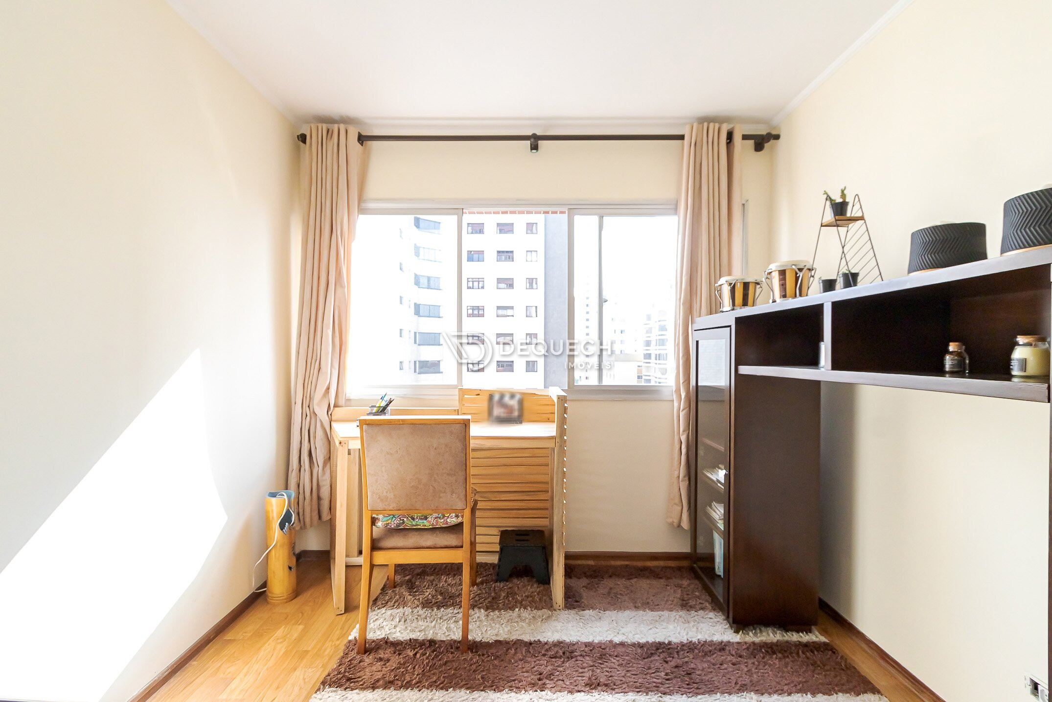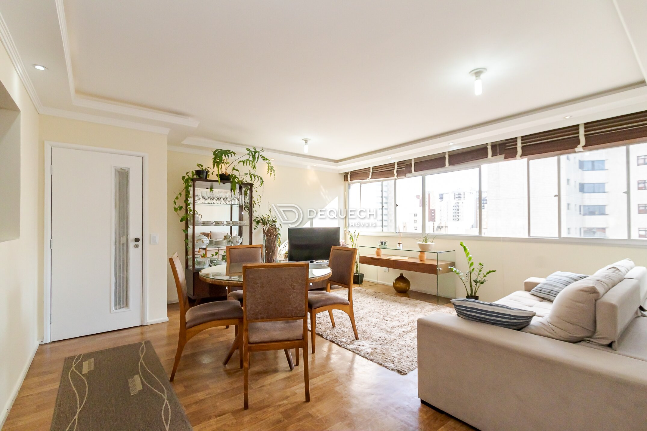 Com 102 m² privativos, a sala é o destaque, marcada por um amplo janelão que valoriza a entrada de luz e cria uma agradável sensação de amplitude. Os ambientes são espaçosos, com circulação fluida e ótima base para um projeto de atualização que preserve a identidade original do imóvel.