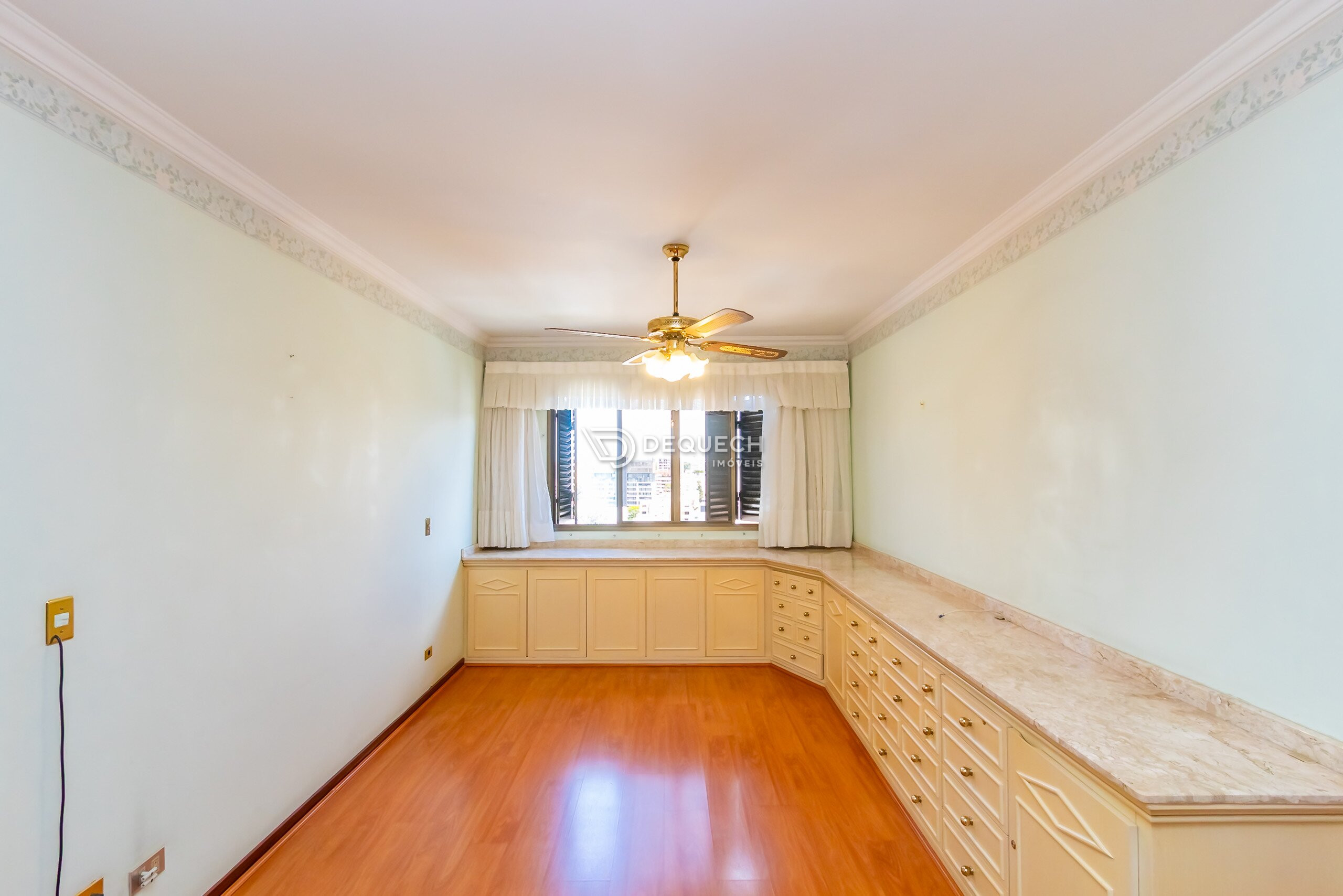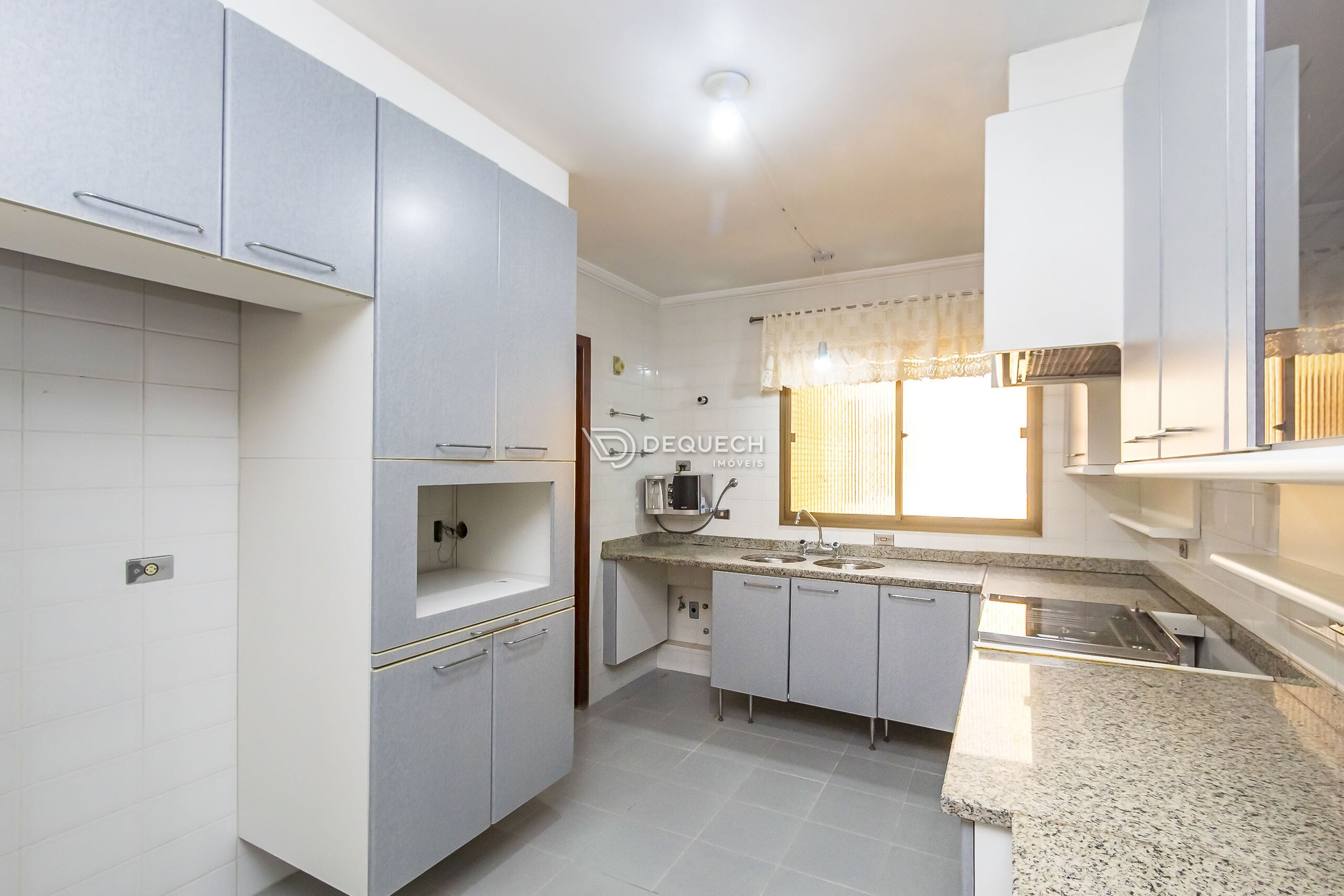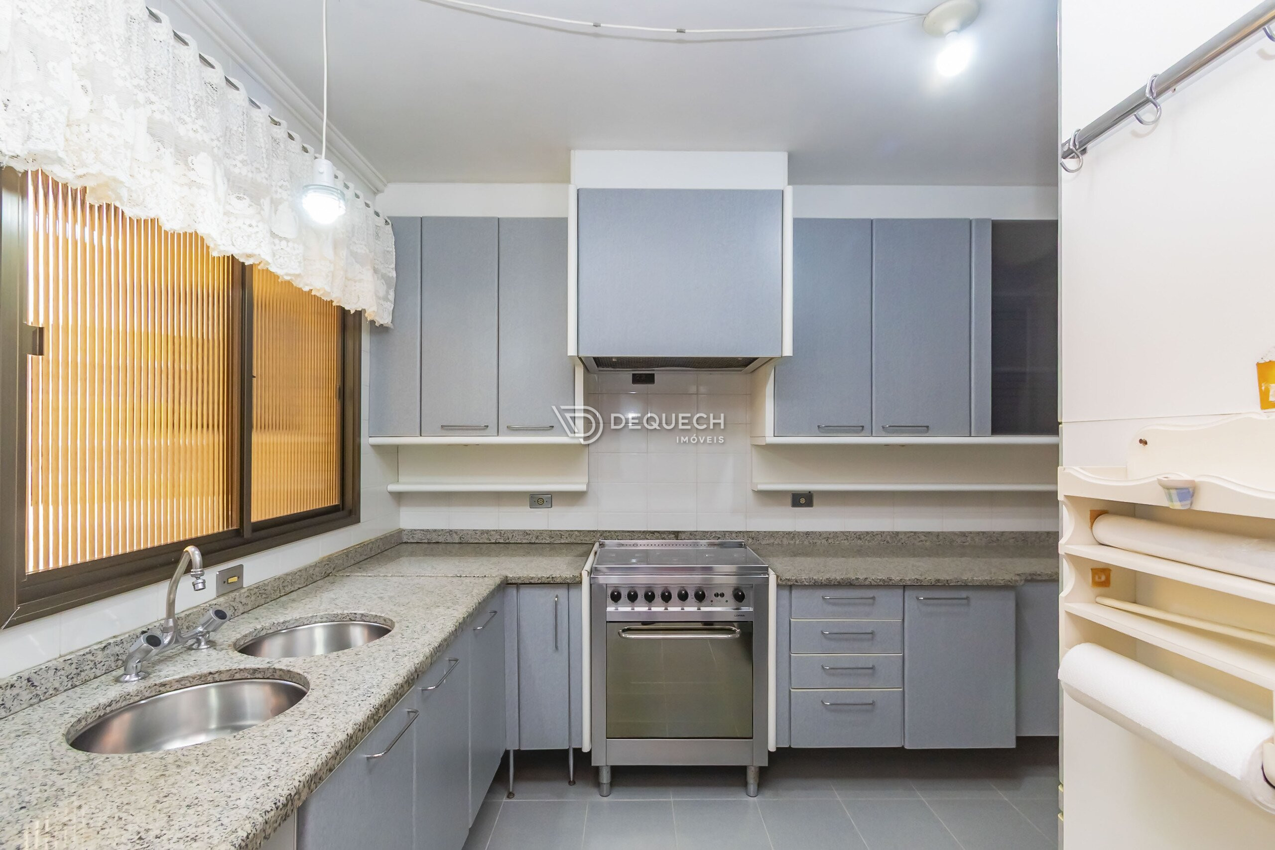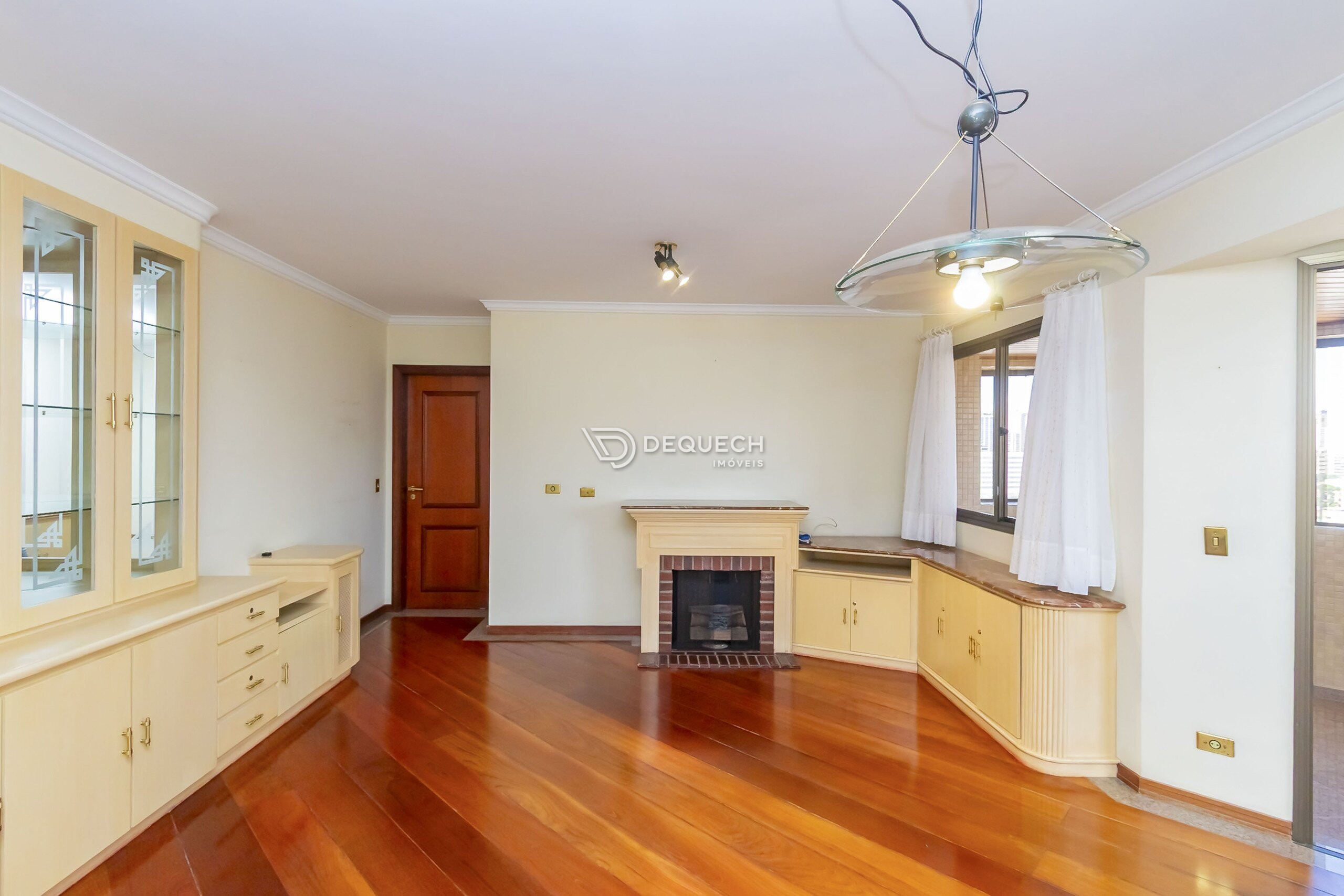 Em andar alto, face norte e com uma vista lindíssima, possui uma bela sala de estar integrada com a sacada. A sala íntima com lareira é ideal para os dias frios. Na ampla cozinha você encontra armários planejados, assim como na área de serviço, além de possuir dependência completa de funcionários.