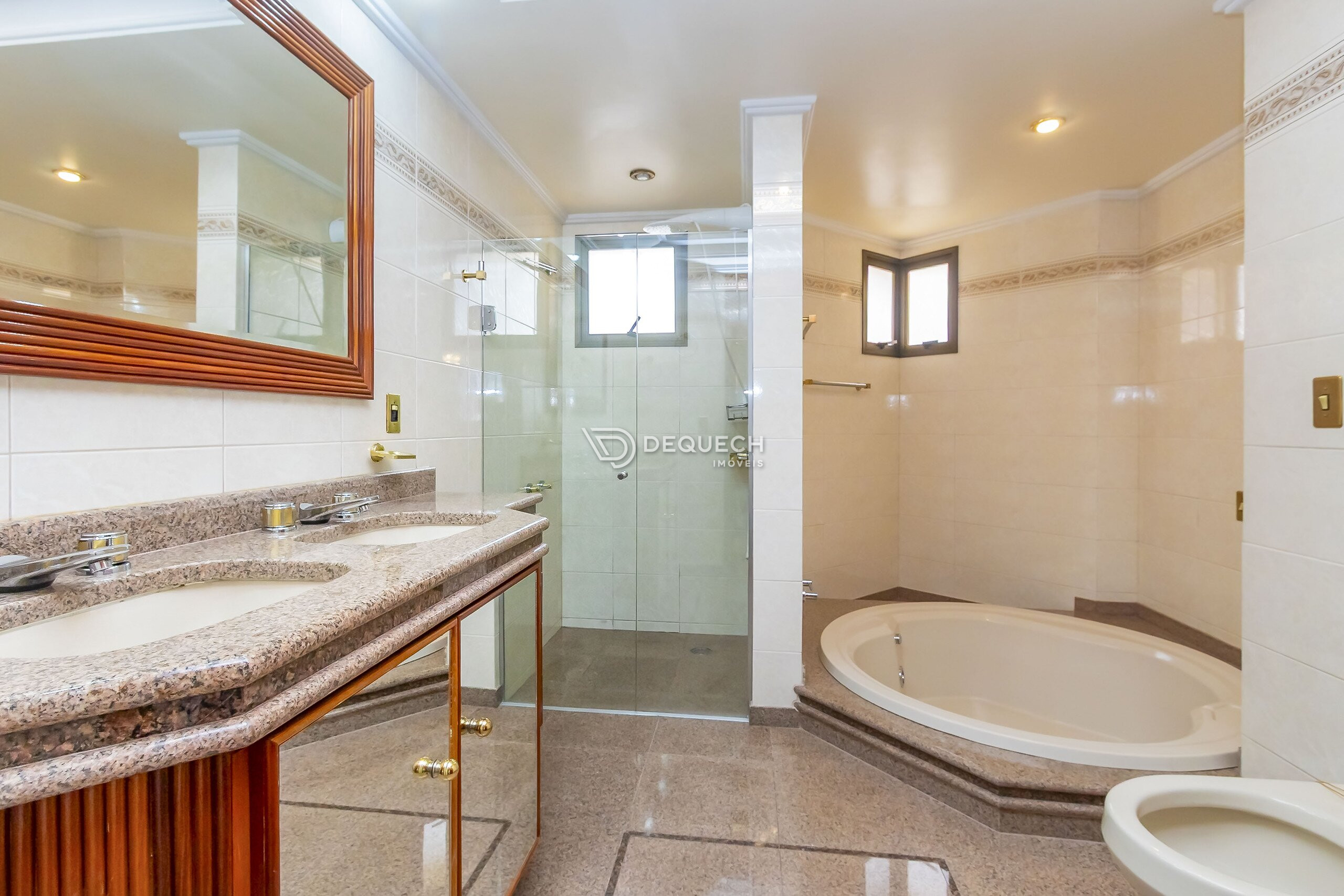 São 4 quartos amplos, sendo 2 belas suítes. Na suíte master, desfrute de um closet e banheiro tipo spa.