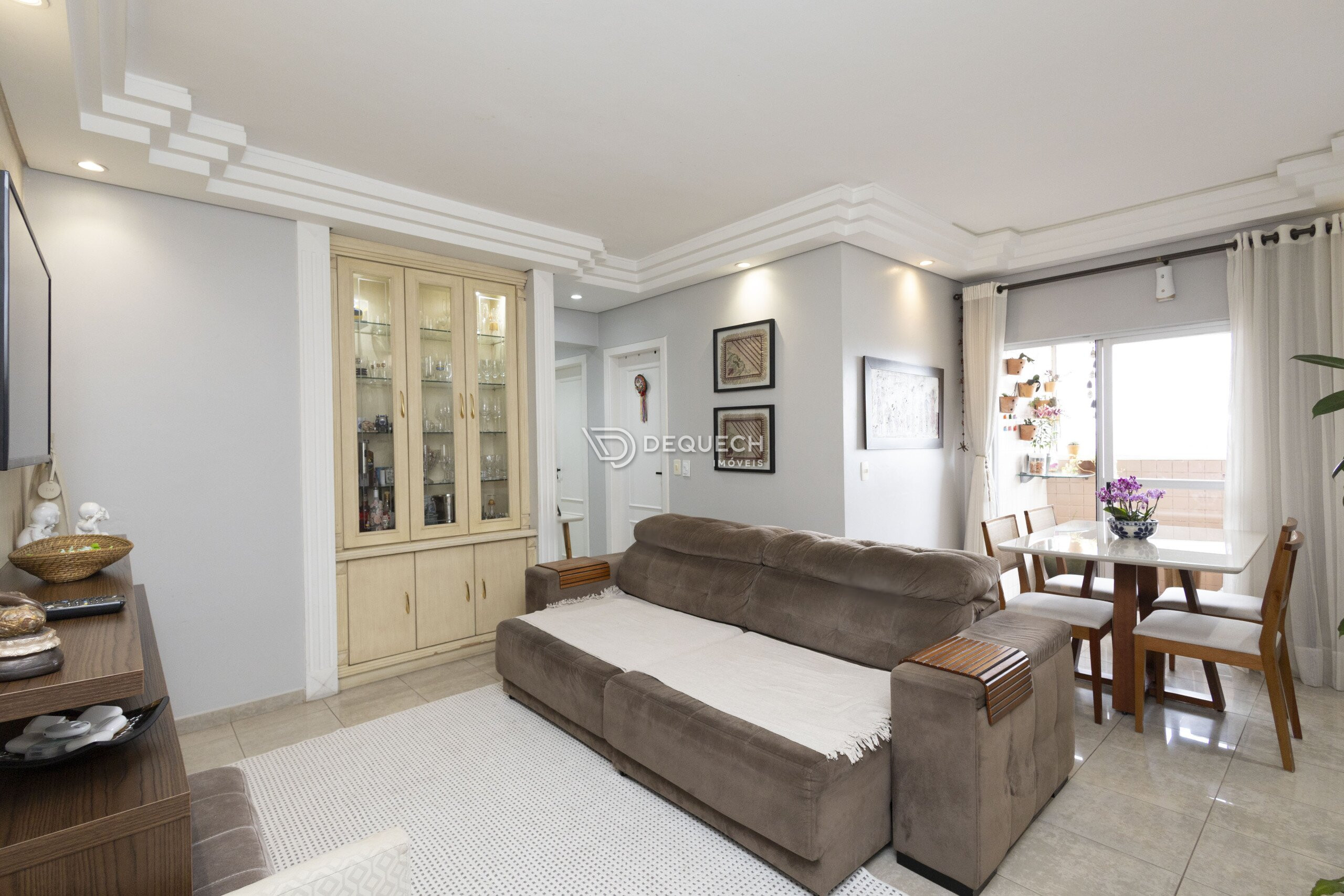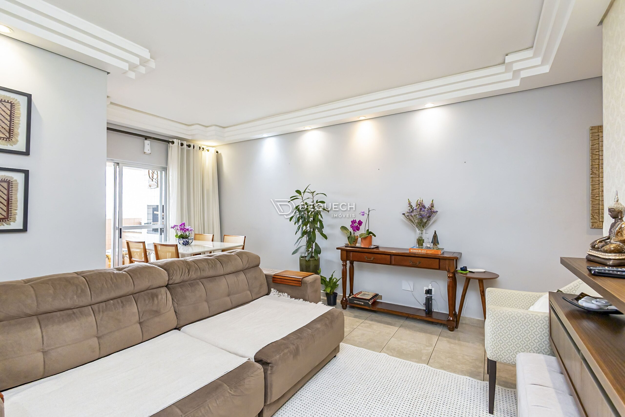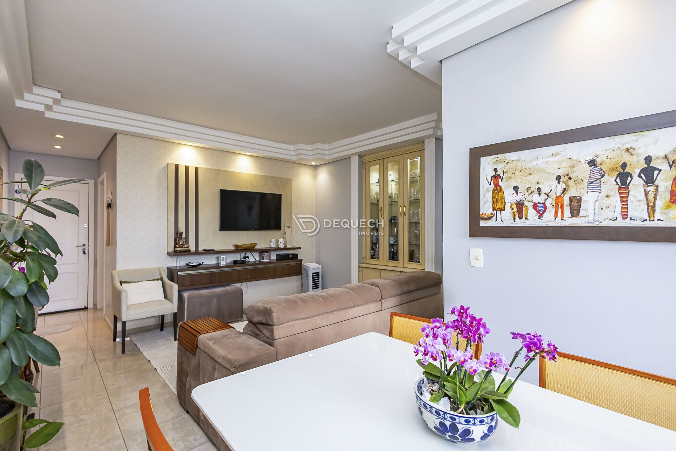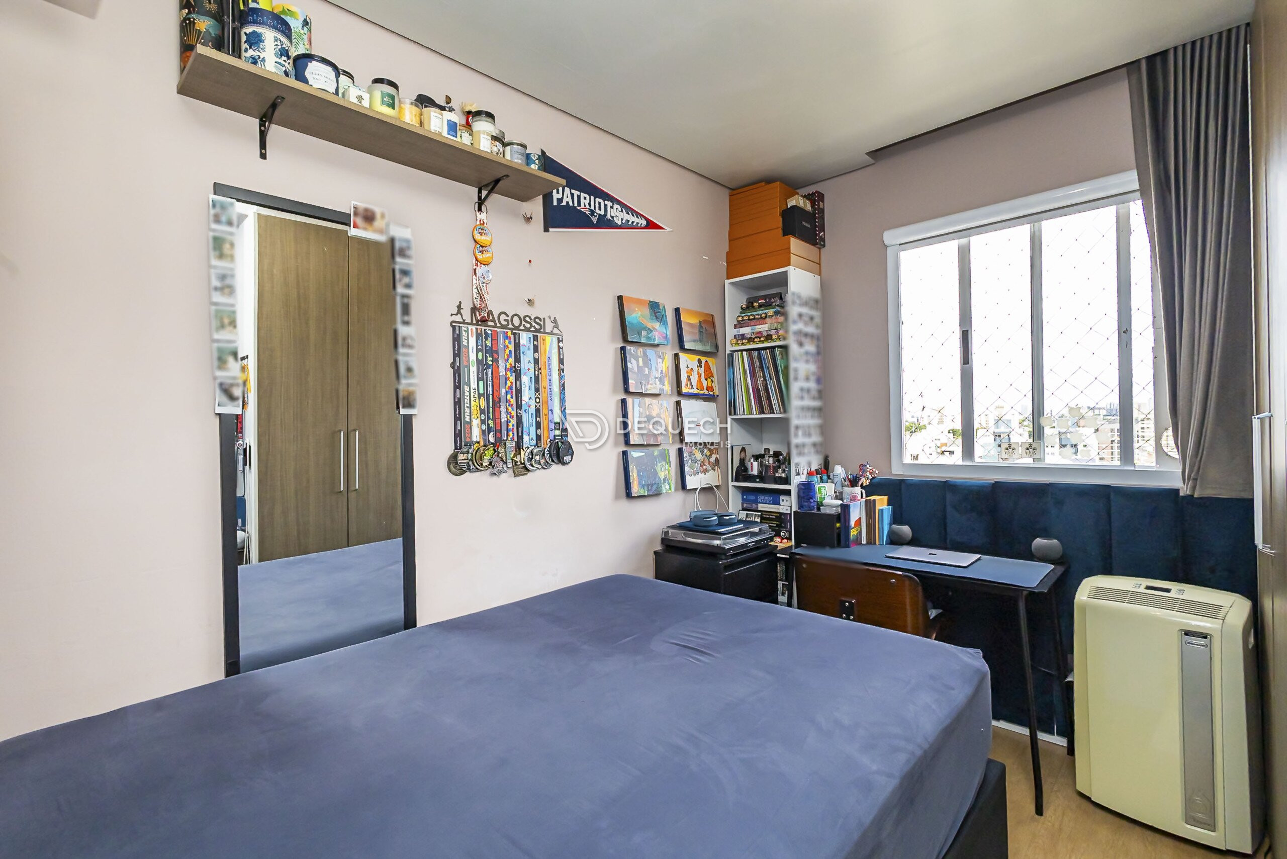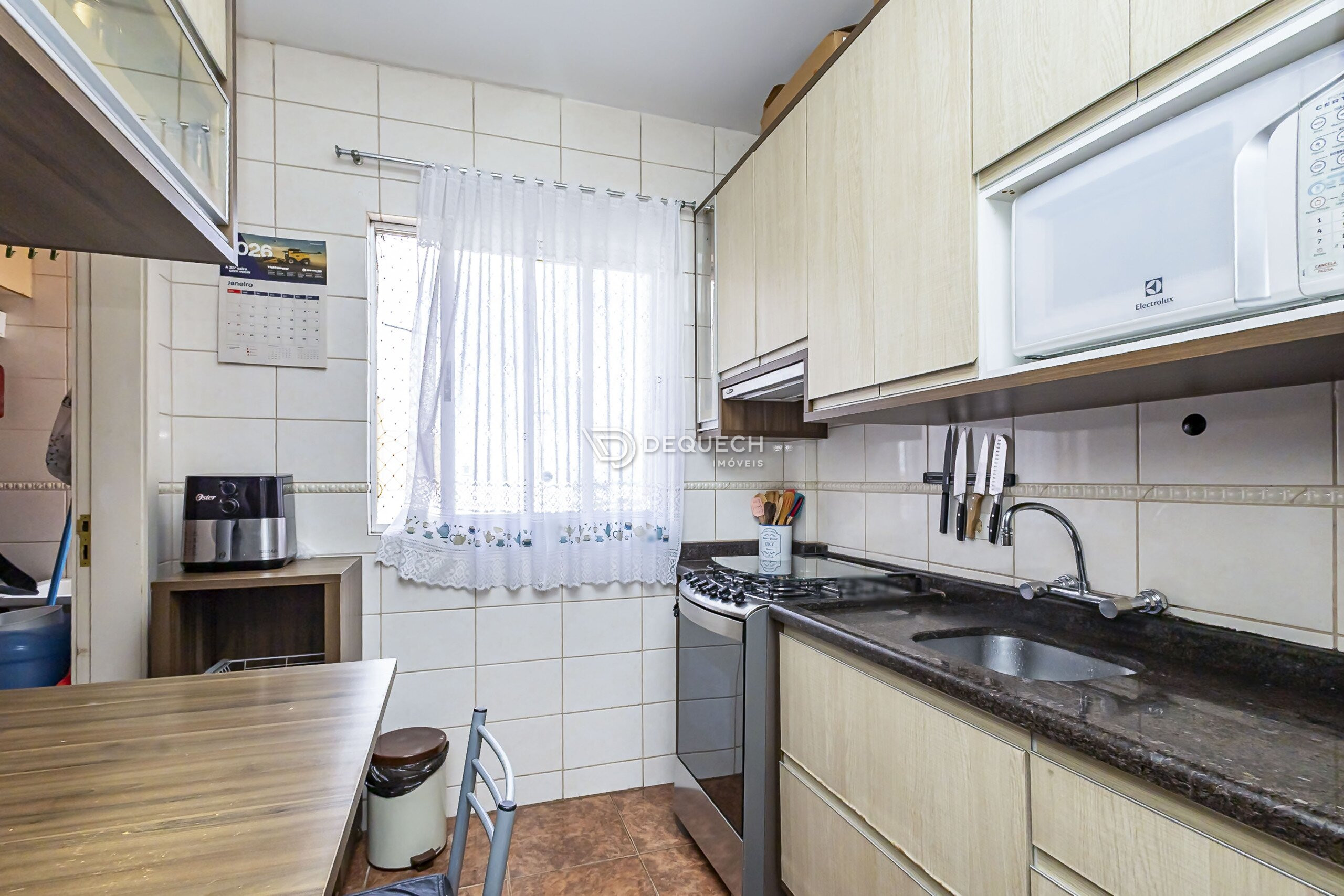 A área social é bem iluminada, com sala para dois ambientes e sacada com churrasqueira a carvão. A cozinha é espaçosa, planejada e integrada à lavanderia separada. São três quartos com armários, sendo uma suíte, além de banheiro social e da suíte com ventilação natural. Possui uma vaga de garagem livre, com depósito anexo, e todos os móveis planejados permanecem no imóvel.