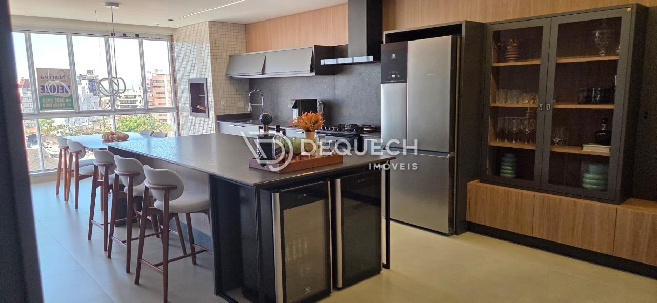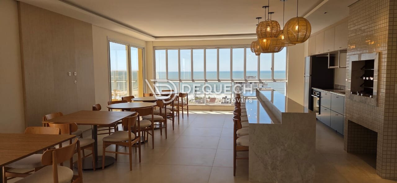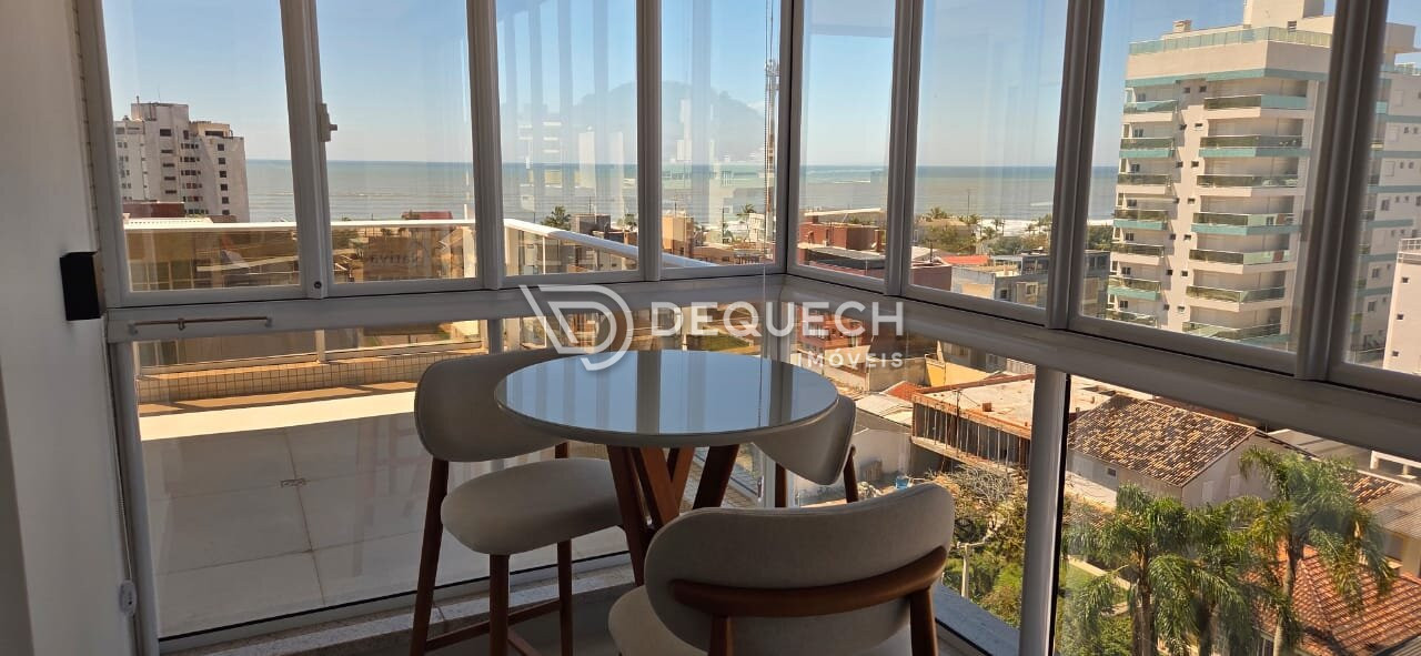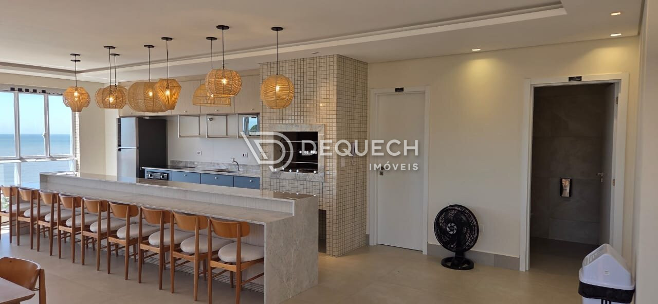 São 3 suítes, todas com sacada e vista para o mar, além de um living integrado à cozinha e churrasqueira, também com vista total.