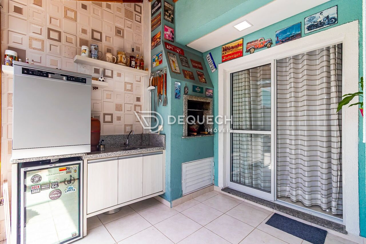O imóvel contém sala para 2 ambientes, lavabo, cozinha, churrasueira e lavanderia no térreo.