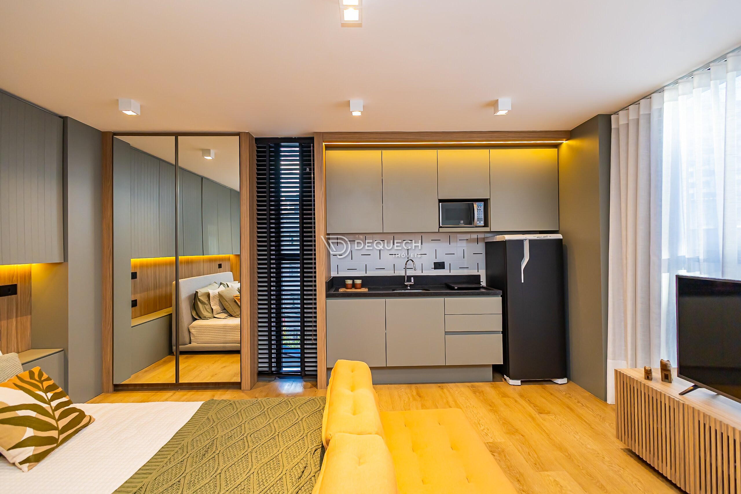 Studios modernos de 32m², com opção mobiliada ou prontos para você imprimir sua identidade.